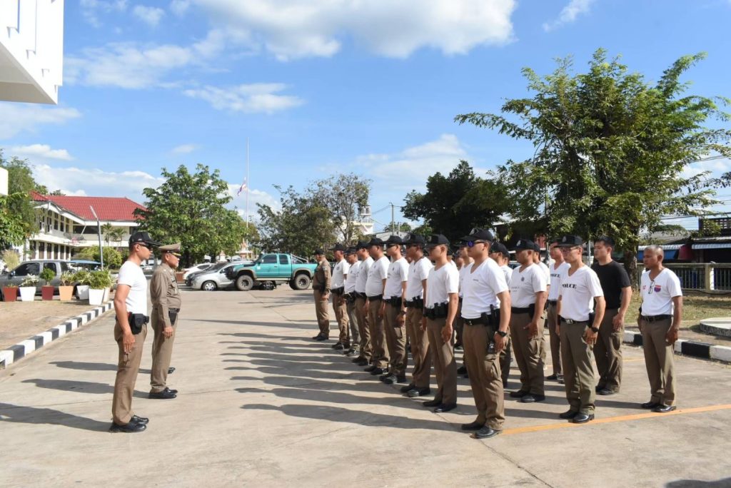 เมื่อวันที่ 27 ธ.ค.2566 เวลา 13.00 น. พ.ต.อ.จุมพฏ มัณยาภา ผกก.สภ.สนามชัยเขต พร้อมด้วย พ.ต.ท.ศิริวุฒิ พัดวิจิตร รอง ผกก.ป. ฯ พ.ต.ท.อัครรักษ์ คำศิริรักษ์ สวป.สภ.สนามชัยเขต นำข้าราชการตำรวจ สภ.สนามชัยเขต ฝึกทบทวนยุทธวิธีประจำสัปดาห์ให้แก่ข้าราชการตำรวจผู้ปฏิบัติหน้าที่งานป้องกันปราบปราม สืบสวน และชุดจราจร ประจำ สภ.สนามชัยเขต
