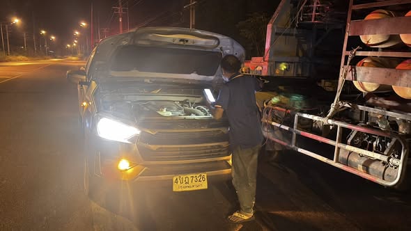 ตำรวจสนามชัยเขต ช่วยเหลือรถบรรทุกแบตเตอรี่หมด