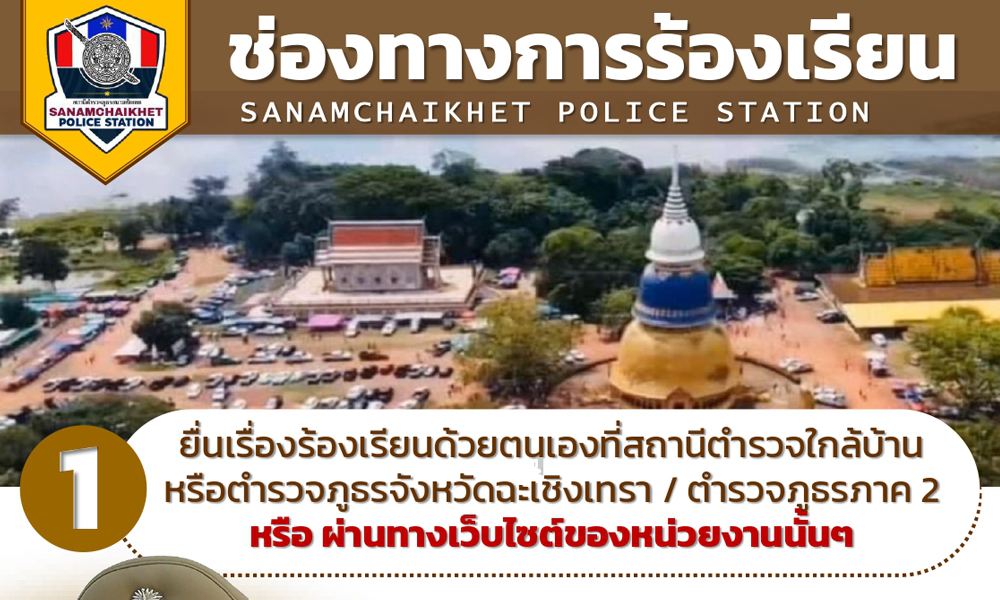 ช่องทางการร้องเรียน SANAMCHAIKHET POLICE STATION 1.ยื่นเรื่องร้องเรียนด้วยตนเองที่สถานีตำรวจใกล้บ้าน